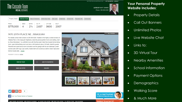 The Cascade Team “Push/Pull” Technology is designed to not only “Push” your homes information out to the public and other agents BUT to also “Pull” potential buyers and multiple offers back in!