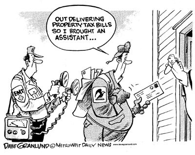 Tax bills are typically mailed in mid-February with half due by the end of April and the other half due at the end of October.