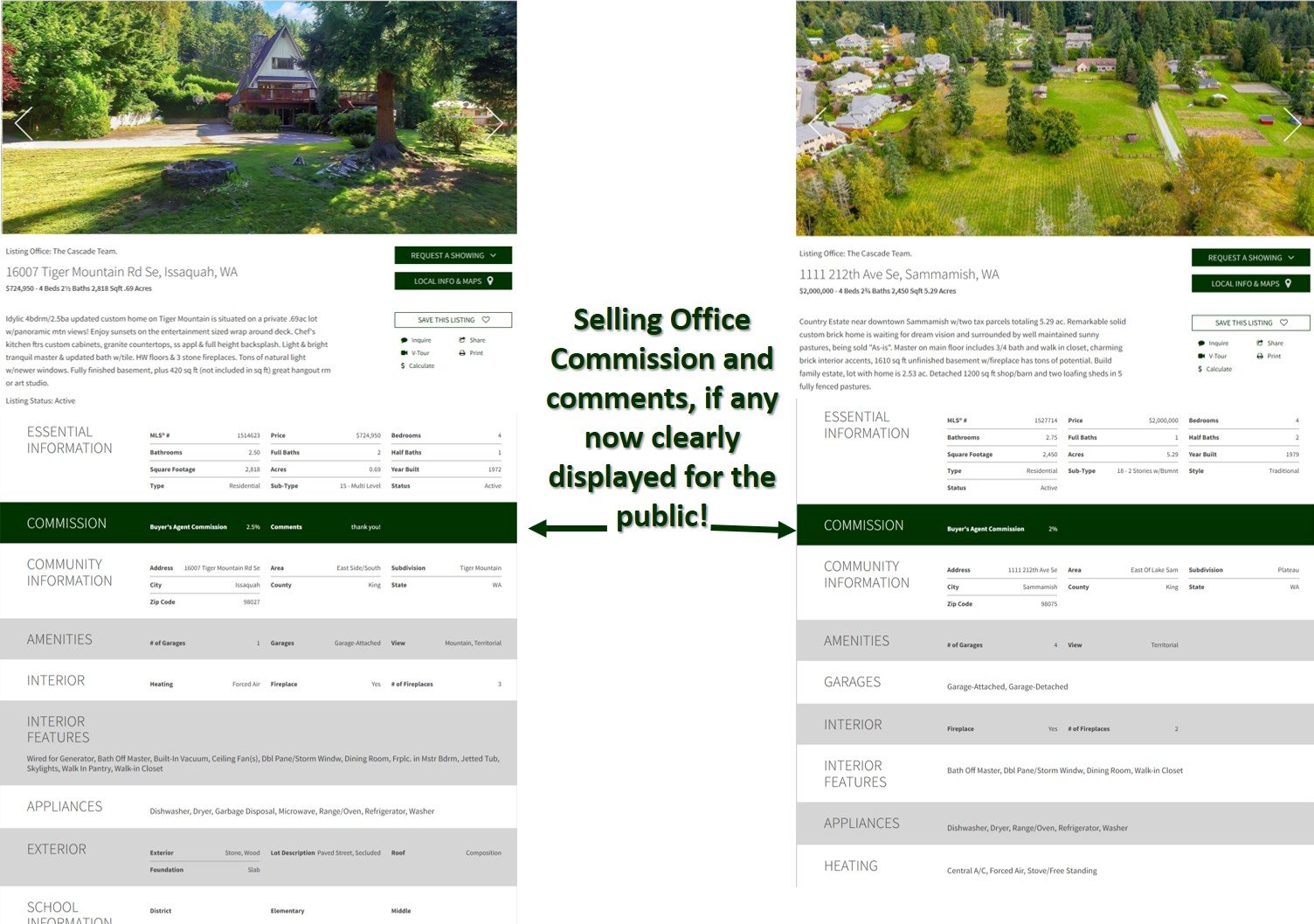The rule changes will allow the NWMLS’s 30,000 agent and broker members to publish the amount of commission the seller is offering a buyer’s broker on the subscribers’ websites along with other listing details.