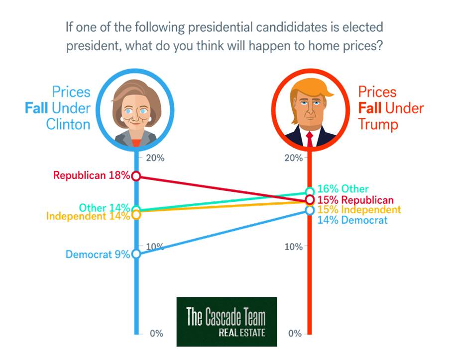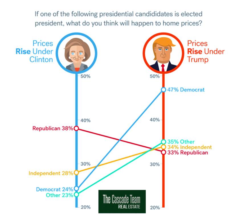 - Likewise, 38% of Republicans said home prices would rise if Clinton were elected, 33% said the same should Trump be elected.