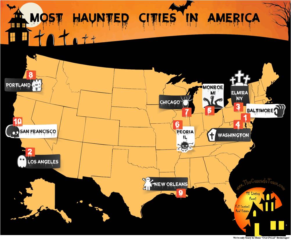 1. Number of national cemeteries, battlefields, abandoned mental asylums, famous haunted places (U.S. Department of Veterans Affairs, National Park Service, io9.com, Stuff You Should Know, The Ghost Diaries, weather.com, LoveToKnow.com)