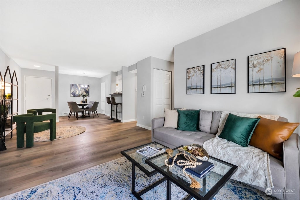 NEW PRICE & FULLY REMODELED 2-bdrm/1.5-bath GROUND FLOOR beauty! ALL NEW LVP flooring, Interior paint, SS Appliances, Cabinets, Quartz Counters, Plumbing Fixtures & Tile! South-facing windows flood Livingroom & both Bedrooms w/ natural sunlight! Elegant designer colors & finishes thru-out! Large storage room off dining area plus extra storage off hallway. Sliding glass door opens up to South-facing paver extended patio that flows into a sprawling residents-only lawn! Pool, athletic courts, clubhouse, semi-private building laundry rooms, landscape & visitor parking all HOA maintained. Deeded parking space #265. No rental cap. 72% owner occupied. Across from MS Main Campus. Easy access to Light Rail, 520, Dining, Amenities & Bellevue schools.
