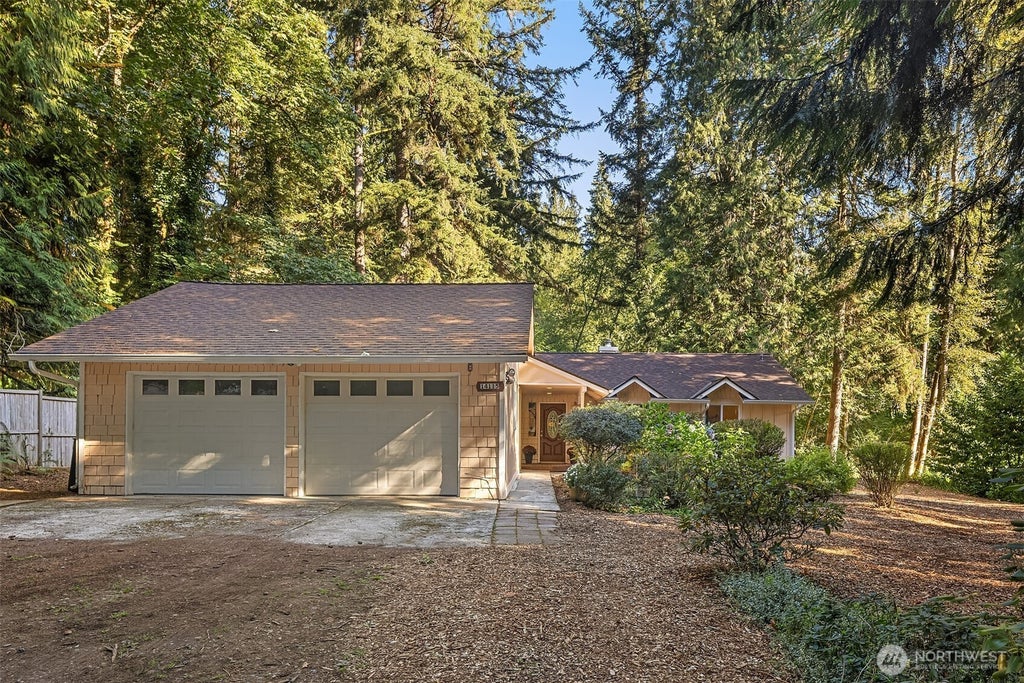 Price reduction! Call it home or consider as investment property in Lake WA School District. Serene single-story Woodinville home on private ½-acre lot offers perfect blend of comfort & convenience. Minutes from everyday essentials, yet feels like a secluded retreat. Gardener’s dream w/mature landscaping & plenty of flat space to garden & play. Interior features 3 bedrooms, 2 remodeled baths, bright, open living areas. Gorgeous windows invite nature's beauty inside. Dining room flows into living room w/cozy wood-burning fireplace. Kitchen includes dining bar, generous cabinets & opens to family room leading to refinished deck & peaceful backyard. Oversized detached 2-car garage w/workshop & generous storage. Fresh paint, new lighting, A/C!