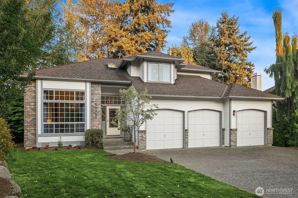 Welcome to beautiful Upland View in West Woodinville! Great location with easy access to Woodinville Wine Country as well as transportation corridors and sought after Northshore School District. You'll love the classic circular floor plan, vaulted ceilings, oversize windows and skylights! Totally remodeled kitchen in 2015 boasts quartz counters, stainless steel appliances and stainless farmhouse sink. Custom cabinets with soft close, pullouts, tray racks and pot drawers, all the best of a modern kitchen! Privacy and green views out nearly every window and hardwood floors through out the main floor make this home feel peaceful and inviting. New furnace and A/C in 2018. Upgraded siding and roof, wood burning fireplace and new deck in 2020!