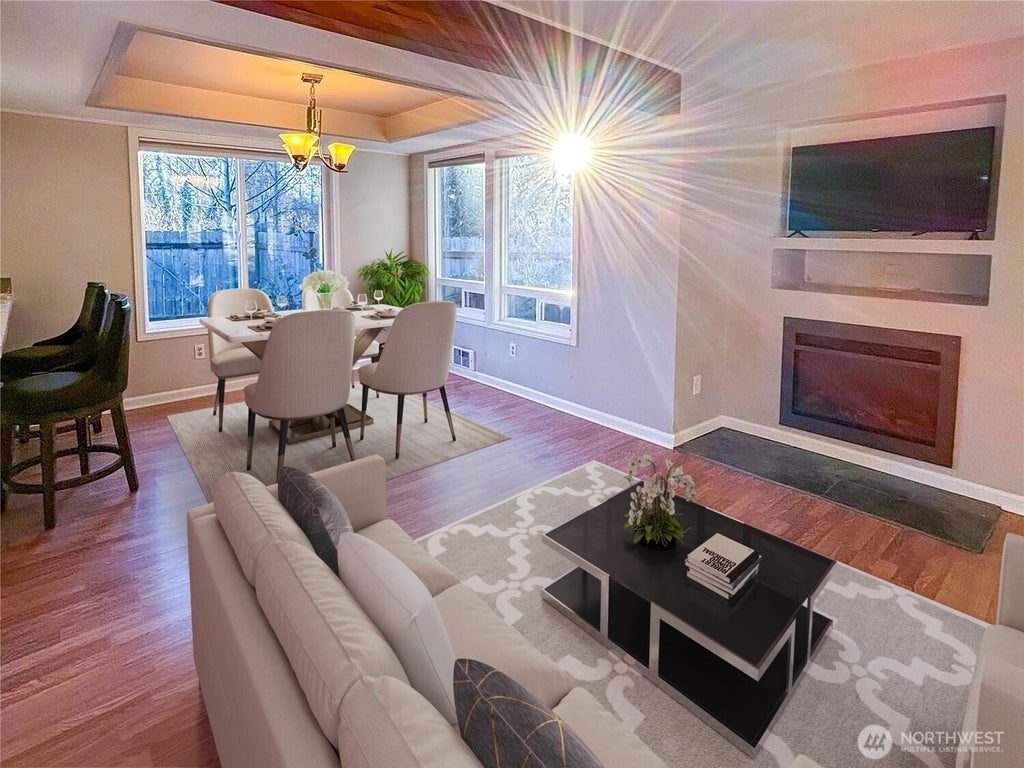 Rare opportunity to own a beautifully upgraded 1460sf home w/3 bedrooms, 2.5 bath in a GREAT LOCATION w/ TOP-RATED SCHOOLS. Minutes from variety of shopping, dining & more. This is THE VERY BEST DEAL below $ 690,000 with ZERO HOA FEES compared to upto $ 650 HOA fees elsewhere w/ possible yearly increases. GREAT INVESTMENT opportunity for Airbnb & Rental. New Flooring & Carpet and new paints. 9 cars since 6 cars can park on Turf yard. Enjoy an open concept, including kitchen w/ Eating Countertop, elegant dining area w/coffered ceiling & living room w/ cozy electric fireplace- overall a bright & inviting space. Lovely French doors lead out to the back patio & artificial turf. The master bedroom features ample space & full bath. Bonus room.